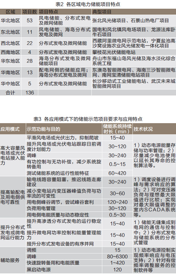 从产业成长过程看,储能技术应用于电力工业从2010年开始正式起步,各大部委和两大电网公司的研究课题、试验项目、示范项目集中出由上表可知,目前国内储能示范工程/项目针对提高大容量新能源发电接入能力的应用,主要通过抑制爬坡、跟踪日前调度计划出力以及功率控制等措施实现;为提高输配电及用电侧供电可靠性,通过解决输电线路容量阻塞、变压器峰值负荷与功率流控制、用电侧负荷与电能质量管理以及动态稳定性等实现;在提升分布式发电与微电网运行能力方面,通过提升分布式发电与微电网的功率控制、能量管理、运行稳定性以及分布式发电设备的有序并网等实现;在辅助服务中,主要用于调频、调峰、旋转备用与黑启动等。在提高大容量风电场或光伏电站接入能力的应用中,受资助示范项目的功能目标聚焦在应用储能技术解决新能源间歇性问题,验证其提高新能源并网接入能力以及转移新能源发电量的能力等方面;提高输配电及用电侧供电可靠性的应用中,受资助示范项目的功能目标聚焦在验证变电站内储能技术应用的目标,平衡电网功率和整合新能源,以及应对岛上电力短缺与过剩等;在辅助服务应用中,受资助示范项目的功能目标聚焦在验证频率调节服务中模块化和可移动的存储方案,以及调峰等。